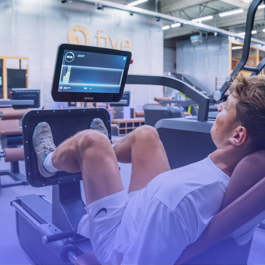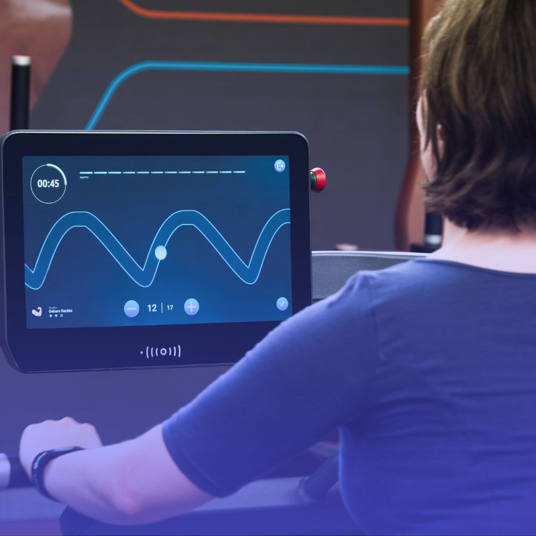 Du börjar med en kort analys, och därefter anpassas maskinerna efter din nivå. Följ bara anvisningarna på skärmen, och du får direkt feedback på dina framsteg och kan justera intensiteten efter behov.